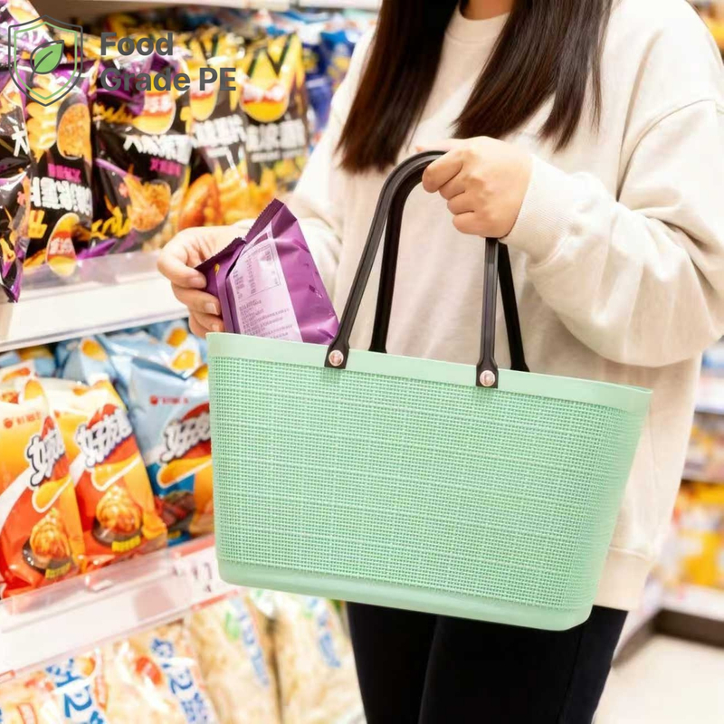 This compact PE mini hand basket is perfect for small item storage and retail product display. Made of sturdy PE, it is durable, lightweight, and easy to clean. Mini size saves desktop and shelf space. Comfortable small handle allows easy carrying. Smooth interior holds stationery, cosmetics, jewelry, and small goods. Simple modern design fits various scenes, offering neat and efficient small-item organization.